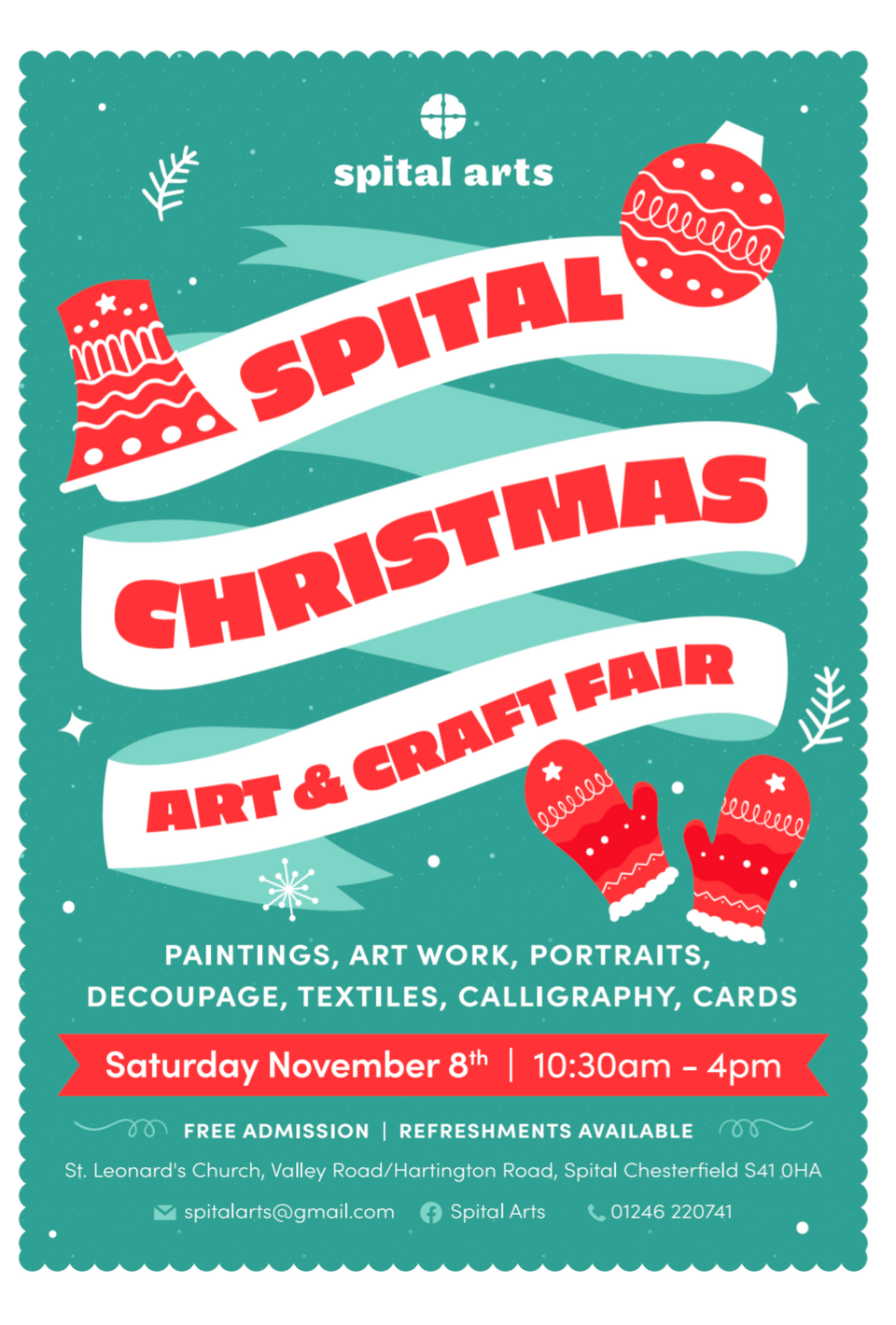 Join us for our free festive arts and crafts fair at St Leonards Church - with a wonderful group of local makers and artists - plus tasty treats and complimentary teas and coffees.